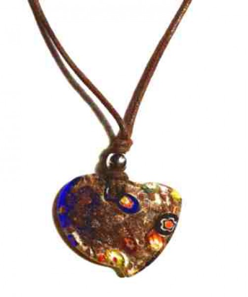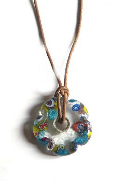 The glass pendants includee glass polos, Millefiore, glass foil, dichroic glass, crosses, aluminium, enamel and beaded pendants on beaded chains or leather cord.
