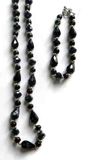 Black  faceted glass bead necklace and matching bracelet with a gift box