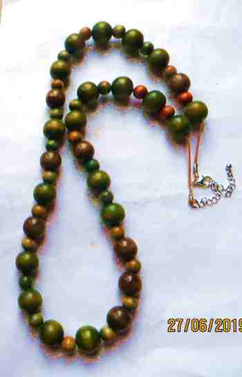 Brown 1 & 2 cm wood beads with a hint of green on leather cord