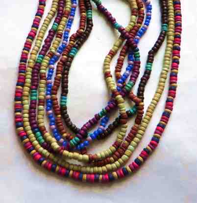 Natural colourcul necklaces made from different coloured wood or coconut beads
