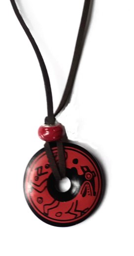 Ethnic pendant 1.5" with black symbols and lines