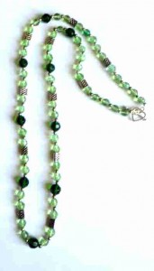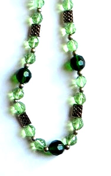 Dark and light green faceted glass beads 6mm and 8mm with rectangle metal beads