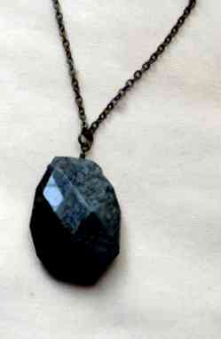 Grey quartz pendant on 17" black chain