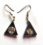 Hematite triangle with a pink crystal bicone in the centre