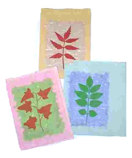 Leaf design cards printed on silk