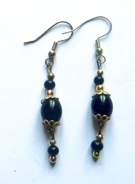 Black glass earrings with gold spacers and a drop bead