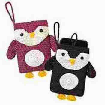 Crocheted penguin mobile case with button and loop fastening