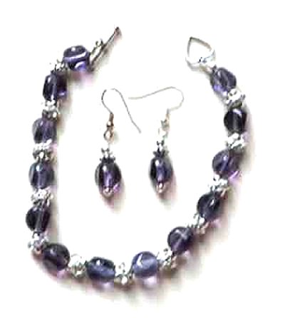 Purple glass beads with sparkly silver metal spacers make up this pretty