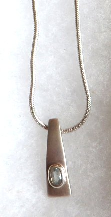 Sterlinv silver pendant 1" long with a glass     on sterling silver chain