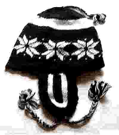 Snowflake hat with ear flaps in purple or black & white